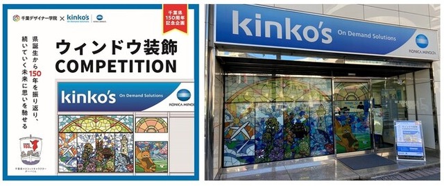 今回の取組みは、以前より卒業制作の協力などを行ってきた千葉デザイナー学院とのコラボレーション企画としてキンコーズ・千葉中央店のウィンドウ装飾のデザインコンペを2023年9月に開催しました。参加学生は、千葉デザイナー学院のイラストレーションコース2年生から6グループに分かれ、デザイン制作とプレゼンテーションが、当社の事務局に対し行われ、審査を経て、受賞作品を決定しました。また、千葉デザイナー学院では、今回の取組みはカリキュラムとして学内でも講評が行われました。