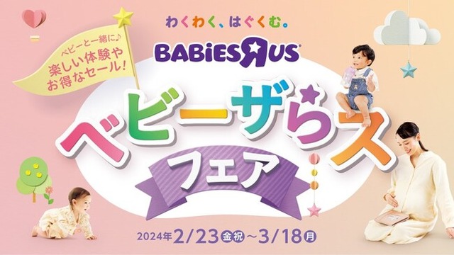 日本トイザらス株式会社(本社:神奈川県川崎市、代表取締役社長:李 孝)が運営するマタニティ・ベビー用品の総合専門店のベビーザらスは、2月23日の『ハローベビー・デー』に合わせて、『ベビーザらス・フェア』を2024年2月23日(金・祝)~3月18日(月)にかけて開催いたします。出産・子育てを応援するお得なセールや、豪華賞品が当たるキャンペーン、全国3会場 (東京都墨田区/岡山県倉敷市/和歌山県和歌山市) での体験型ベビーイベント「ハローベビー・フェスタ」の開催などを通して、これからベビーを迎えるプレママや子育て中のママ、パパ、ご家族の出産・子育てが、よりわくわく楽しいものとなるよう応援して参ります。