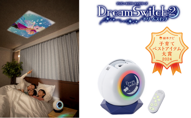 「絵本ナビ 子育てベストアイテム大賞2024」は、年間2000万人が利用し7割のユーザーが子育て層の絵本情報サイト「絵本ナビ」ユーザーと、絵本ナビ編集部の子育て中のママパパ社員により決定するアワード型の企画です。初開催となる今回は、子どもの五感や生きるためのチカラを育んでくれる商品サービス11品のうち、幸せな子どもとの寝る前の時間を手助けできるアイテムとして、『Dream Switch 2』が五感をはぐくむ部門の大賞を受賞しました。