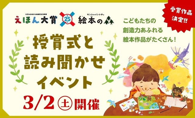サンシャインシティ 噴水広場にて、「サンシャインシティ 絵本の森」賞含む第25回えほん大賞の授賞式を開催。「大賞(絵本部門・ストーリー部門)」に加え、「絵本の森」賞の授賞式を行います。