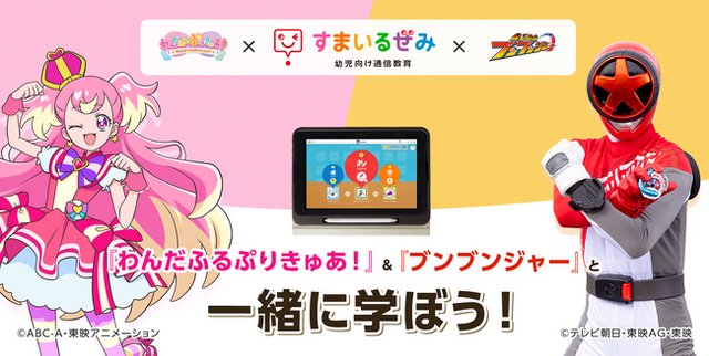 株式会社ジャストシステム(本社:東京都新宿区、代表取締役社長:関灘 恭太郎)は、タブレットで学ぶ通信教育「スマイルゼミ 幼児コース」と、人気アニメのプリキュアシリーズ「わんだふるぷりきゅあ!」、スーパー戦隊シリーズ「爆上戦隊(ばくあげせんたい)ブンブンジャー」とのコラボレーションキャンペーンを、本日2月16日(金)より開始します。