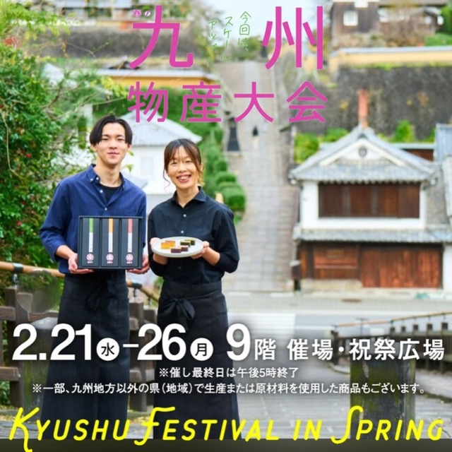 国内物産展の中でも人気を誇る「春の九州物産大会」。今年は祝祭広場まで拡大し2会場で九州7県の魅力を紹介。今回は、街並みや伝統を感じさせる城下町で受け継がれる工芸と食、7県それぞれで名産とされるフルーツをクローズアップ。旅したような気分を味わえる人気の土産コーナーは、100種類以上のアイテムが充実します。
