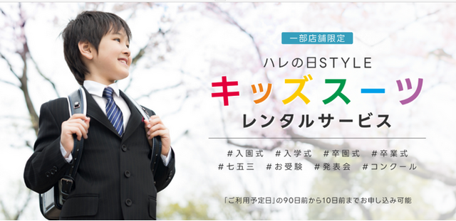 これらのご要望にお応えし、お子様の大切な人生の節目となる入園式・入学式・卒園式・卒業式・七五三・お受験など、思い出に残る一日に、お子様にも「着飾る」ことの喜び感じていただきたく、ハレの日STYLE「キッズスーツレンタル」のサービスを提供する運びとなりました。