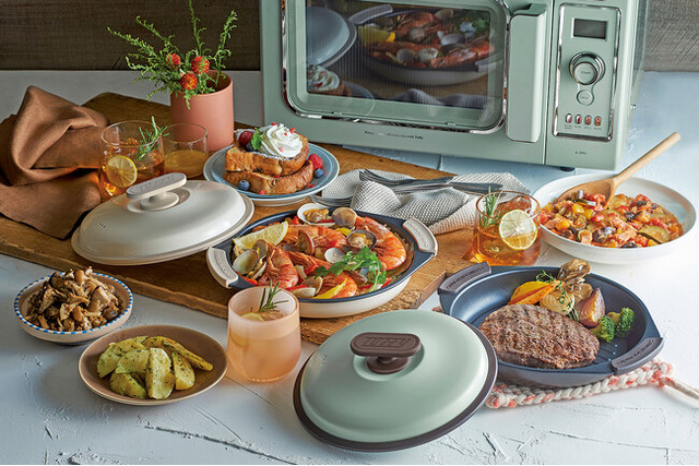 この度発売するのは、電子レンジに入れるだけで、焼く、炒める、蒸す、茹でる、炊く、煮るなどの調理ができる1台6役の電子レンジ調理専用鍋です。本体底面の特殊素材が電子レンジのマイクロ波を熱に変換し、プレートで加熱調理することで、火を使わなくても焼き目がついた本格的な料理が完成します。調理してそのまま食卓に出せるので洗い物を減らすことができ、毎日の料理がもっと手軽になります。