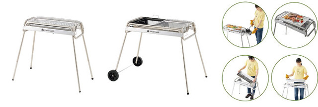 また、「LOGOS LAND チューブラルグリル」4種は、調理しやすい高さ約80cmのハイポジションと約41.5cmのローポジションに対応しており、「LOGOS LAND キャスターグリル(防水カバー付)」はキャスターと防水カバーが付属しているのでグリルの移動もラクラクです。