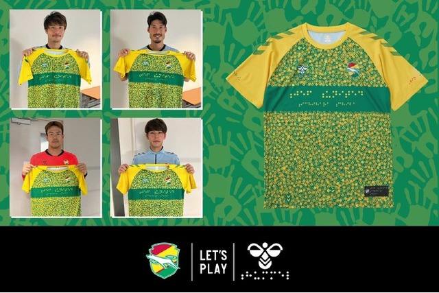 重なった手のひらが、千葉県の県花「菜の花」としてスタジアムに広がる様子をイメージし、シャツの裾部には、クラブ名を点字加工で施し、浮き出た文字を指先で触って読み取れるようにしています。