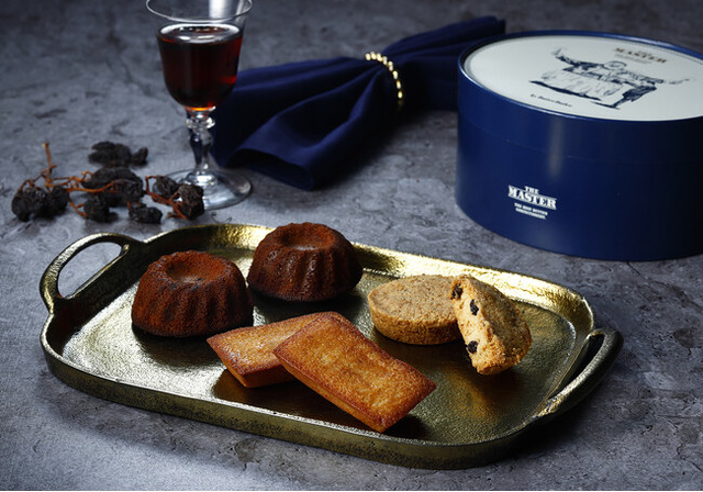 『ザ・マスター シーズナルエディションblue』は、3種のお菓子を詰め合わせた期間限定商品です。一番人気のバターのコクとナッツの香ばしさにこだわった「バターフィナンシェ」の他、メープルの甘味とラムレーズンの酸味が効いた「ラムレーズンバタークッキー」、バター香るしっとりした生地にラムレーズンを閉じ込めた「ラムレーズンバターケーキ」の詰め合わせでございます。