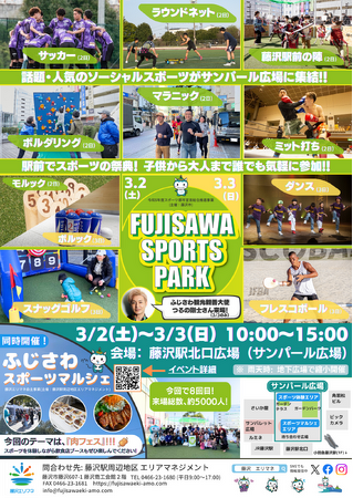 湘南鵠沼フレスコボールクラブ(以下略:SKFC)が参加する3月3日(日)には、ふじさわ観光親善大使の「つるの剛士」さんも来場予定です。同時開催で「ふじさわ肉フェス」も開催され、スポーツも食事も楽しめる盛りだくさんのイベントとなっております。