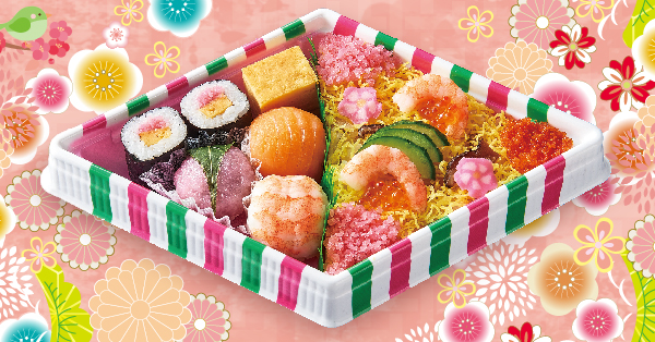ちらし寿司・てまり寿司の他、ミニ桜餅など色々楽しめて、見た目もかわいい♪フェアイチオシメニューです!
