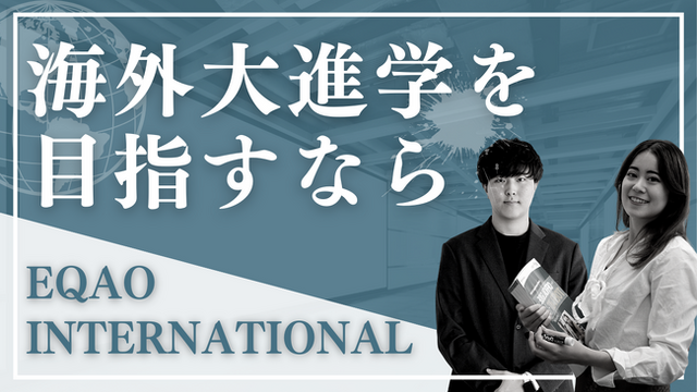〈海外大進学コース開設〉AO入試合格実績で業界トップクラスを誇る塾っぽくない塾EQAOが海外大学進学コース「EQAO INTERNATIONAL」を新設します。グローバル化が進む現代社会で、英語力はもちろん日本から出て海外で勉強をした経験や挑戦した経験が重宝される傾向にあります。日本の大学におけるAO入試で多くの合格者を輩出してきたEQAOが、海外の大学受験においても手厚くサポートいたします。本コースを新設するにあたって提携したのは、海外の大学受験に強いDana先生。海外大学受験のプロであるDana先生とAO入試に強いEQAOがタッグを組んで海外受験対策を行います。