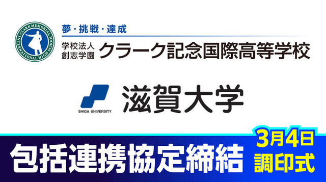 広域通信制高校のクラーク記念国際高等学校(本校:北海道深川市、校長:吉田洋一、以下、クラーク国際)は、滋賀県彦根市に彦根キャンパスを2024年4月より新規開校し、同時に国立大学法人滋賀大学(滋賀県彦根市、学長:竹村彰通、以下、滋賀大学)と包括連携協定を締結します。この協定は、主に滋賀大学のデータサイエンス学部と協力し、両校の特長を生かした教育環境の創出を目指すもの。2024年3月4日(月)に滋賀大学彦根キャンパスにて、本協定の調印式を執り行います。
