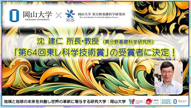 国立大学法人岡山大学(本部:岡山市北区、学長:那須保友)の高等先鋭研究院を構成する機関のひとつである異分野基礎科学研究所の沈建仁所長・教授が公益財団法人東レ科学振興会「第64回(令和5年度)東レ科学技術賞」の受賞者に決定しました。本情報は、2024年2月16日に同振興会ホームページで公開されました。