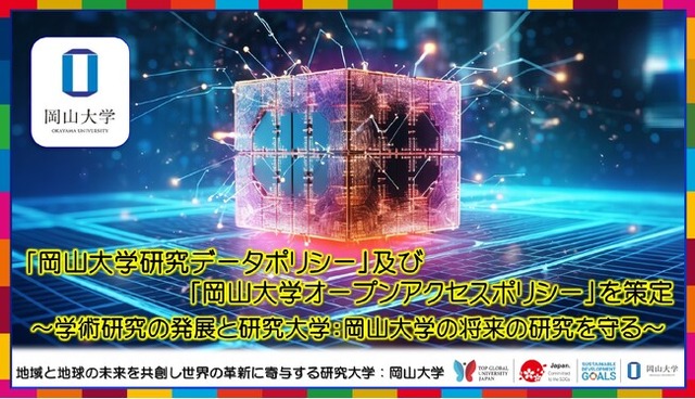 国立大学法人岡山大学(本部:岡山市北区、学長:那須保友)は2024年1月15日、「岡山大学研究データポリシー」及び「岡山大学オープンアクセスポリシー」を策定し、2月20日に公開しました。