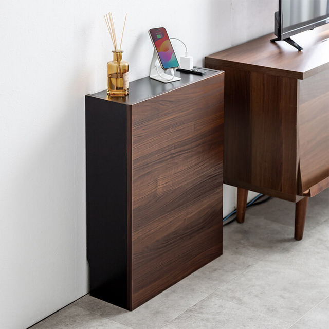 ルーター収納ボックス ケーブルボックス 幅50cm 高さ65cm コンセント付き 木製 スリム 壁面収納 電話台