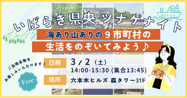 ENGAWA株式会社(読み:エンガワ、代表取締役社長:牛山隆信、以下「当社」)は、いばらき県央(※)への移住・定住PRイベント「いばらき県央ツナゲナイト!海あり山ありの9市町村の生活をのぞいてみよう♪(以下、「本イベント」)」を2024年3月2日(土)14:00より六本木ヒルズで開催します。