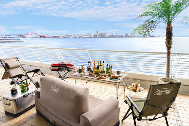これまで、テラス席が確約されたプランは夏季限定のビアテラスのみの販売でしたが、春の行楽シーズンならではの新しい過ごし方のご提案として、世界的なアウトドアブランドである「Coleman」とコラボした特別なお食事プラン、“Seaside Terrace BBQ with Coleman”を販売いたします。