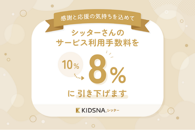 株式会社ネクストビート(本社:東京都渋谷区、代表取締役:三原誠司)が運営する「保育士・幼稚園教諭・看護師」100%のベビーシッターマッチングサービス「KIDSNAシッター」は、登録シッターからの手数料について、2024年3月4日(月)より(※)現在の10%から、8%に引き下げを行うことをお知らせいたします。