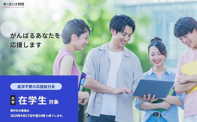 新2,3,4年生となる大学生を対象とした「がんばれ!日本の大学生 応援給付金」の募集が今年も始まります!この応援給付金は公益財団法人キーエンス財団が「日々頑張っている大学生を応援したい。」との思いから2020年にスタートしました。今年は2,000名の募集を行います!