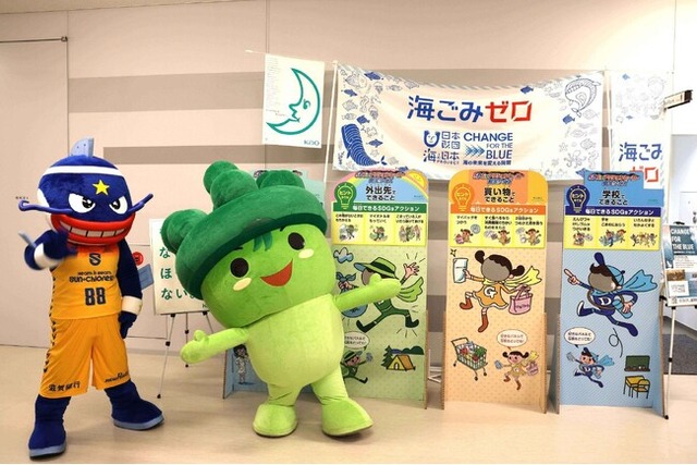 海と日本プロジェクトは活動の輪を広げようと、普段から環境を守る取り組みをしている滋賀レイクスと花王とコラボイベントを実施しました。