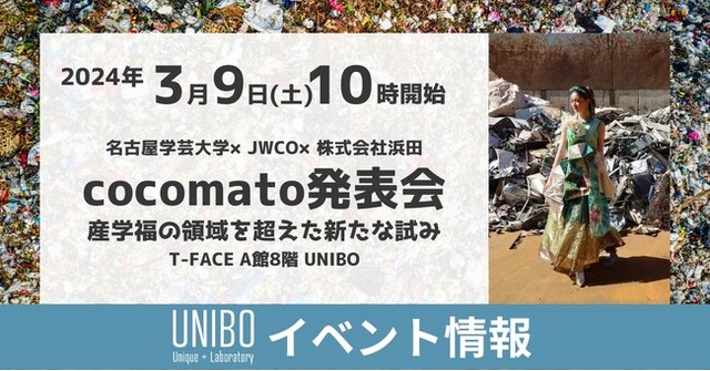 映像・デザイン・ファッションの学科をもつ名古屋学芸大学メディア造形学部(https://www.nuas.ac.jp/index.html)と障がい者支援事業を運営する一般社団法人日本福祉協議機構(https://n-fukushi.jp/)、「環境ソリューション企業のファーストコールカンパニー」を目指す株式会社浜田(https://www.kkhamada.com/)は、産福学の領域を超えた新しい試みとして、産業廃棄物をファッショナブルに纏うライフスタイルを提案する「cocomato(ココマト)」の発表会を開催します。