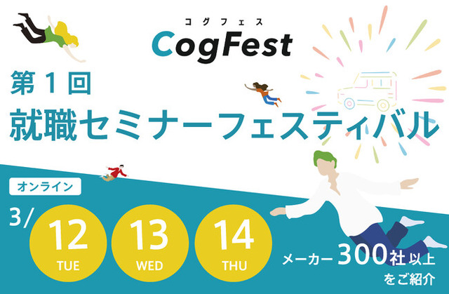 株式会社フォーラムエンジニアリング(東京都港区、代表取締役社長:佐藤 勉)が展開する理工系学生に特化した機械・電気系エンジニア就職支援サービス「コグナビ新卒」は、2024年3月12日(火)~14日(木)の3日間、オンライン就活フェアサイト「CogFest」(以下「コグフェス」)内で全国300社以上のメーカー企業を紹介するオンライン就職セミナー「第1回就職セミナーフェスティバル」を開催します。