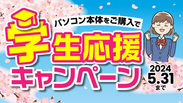 パソコン市場 店頭にてパソコンをご購入の際、有効な学生証・合格通知書・在学証明書をご提示いただいたお客様に対し、新生活に便利・お得な特典をプレゼントいたします。