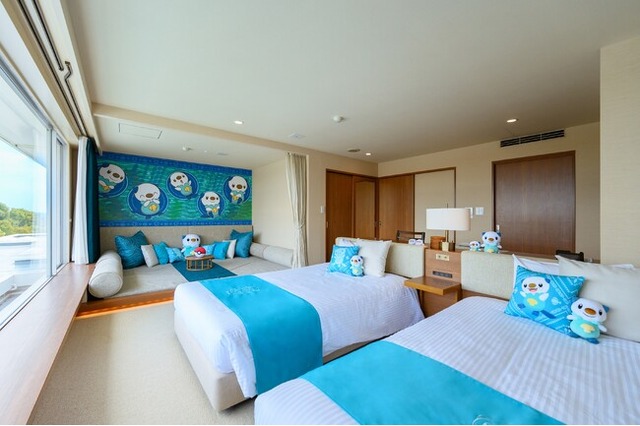 このたび、販売を開始する「三重県×ミジュマル」とコラボした特別な1室「ミジュマルルーム」では、みえ応援ポケモンの「ミジュマル」がお部屋のあちこちでみなさまをお迎えするほか、三重県とミジュマル、両方の魅力をお楽しみいただけるしつらえになっています。