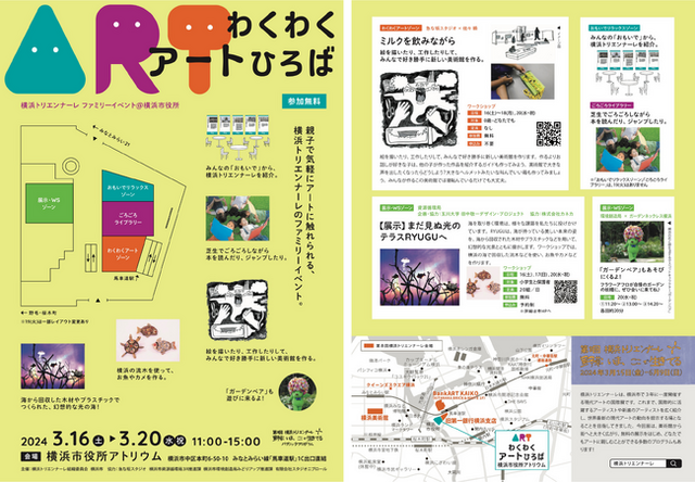 横浜トリエンナーレ組織委員会及び横浜市は、第8回横浜トリエンナーレ開幕直後の3月16日(土)から20日(水・祝)までの5日間、横浜市役所アトリウムで、横浜トリエンナーレファミリーイベント「わくわくアートひろば」(以下、本イベント)を開催します。