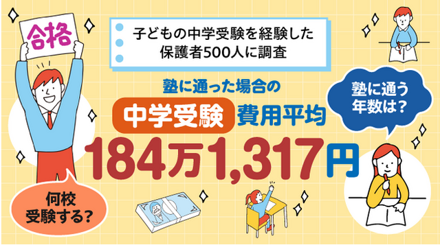 「中学受験にかかる費用の総額平均は約184万円!保護者500人に聞いた塾のタイプや通った年数での違いを調査」