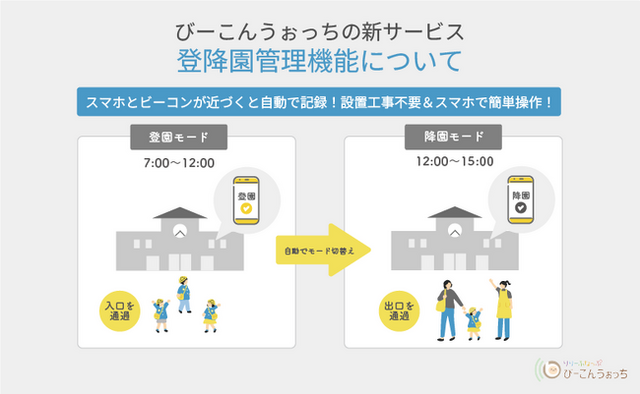 びーこんうぉっち 新サービス「登降園管理機能(仮)」のイメージ