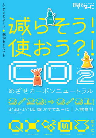 地球温暖化の原因の一つともいわれているCO2。でもCO2を「減らす」にはどうしたらいいんだろう?CO2を「使う」ってどういうこと?がすてなーにを巡りながら楽しく探ろう!