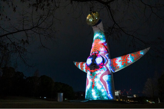 プロジェクションマッピング:万博記念公園の象徴として親しまれてきた太陽の塔。70年万博の情景や岡本太郎作品をテーマにした新作と過去作を高さ60m×幅60mの迫力の映像と音響のインターメディアで表現。