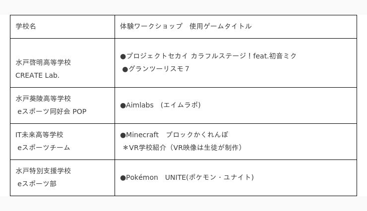 同イベントでは、告知映像の制作やオープニングMCを水戸啓明高等学校 CREATE Lab.の生徒が担当したほか、ワークショップと並行して実施されたeスポーツクイズラリーの受付も各参加校の生徒が分担して担当するなど、体験ワークショップをはじめとするイベント全体の運営を、高校生が中心となって実施しました。