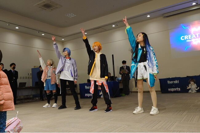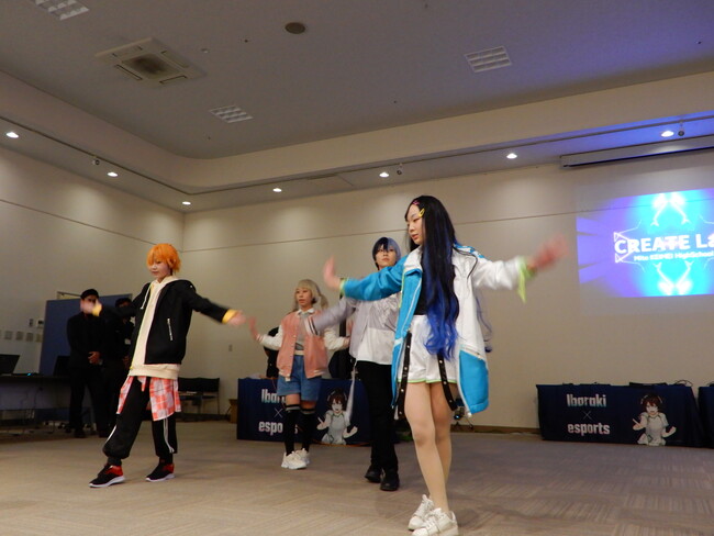 水戸啓明高等学校 CREATE Lab.の生徒によるコスプレダンスステージ。同校のeスポーツ体験ワークショップでも使用した「プロジェクトセカイ カラフルステージ!feat.初音ミク」に登場するキャラクターに扮した生徒達が、ダンスパフォーマンスを披露し会場を盛り上げました。