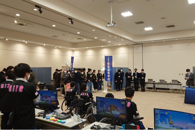 茨城県水戸市と笠間市の4つの高校・特別支援学校で日頃よりeスポーツの活動に取り組む高校生達が、eスポーツ体験ワークショップの企画から運営を担当。学校ごとに、様々なゲームタイトルの体験ブースを用意し、普段はプレイヤーとして活動する高校生が、ブースを訪問した方々に丁寧に説明するなど、初めてプレイする来場者の方々にもプレイを楽しんでいただくことができるよう対応しました。eスポーツイベントの運営を経験するのは、今回が初めてという学校も多数でしたが、部活動の時間などを使ってそれぞれに準備、練習を重ねた成果を発揮し、当日は様々な来場者にeスポーツの楽しさを存分に体感いただきました。