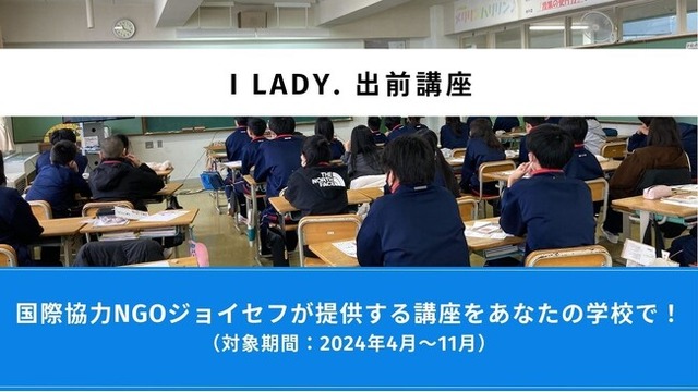 国際協力NGOジョイセフ(東京都新宿区)は、日本の主に10~20代を対象にセクシュアル・リプロダクティブ・ヘルス/ライツ(性と生殖に関する健康と権利:以下SRHR)に関する情報提供を行い、アクションのきっかけをつくる「 I LADY. 」プロジェクトの一環で、自分のからだや月経、性感染症、妊娠、ジェンダーなど、特に若者に必要な情報を盛り込んだI LADY.出前講座を、日本全国*の中学校・高校・大学で新たに実施します(*一都三県除く・期間・訪問数限定あり)。