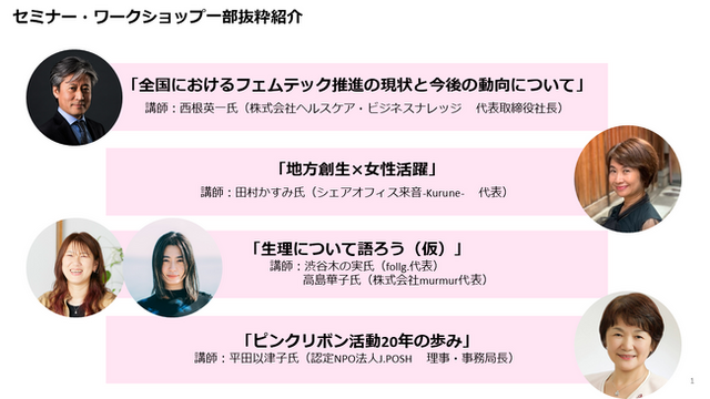 今回のイベントでは、それら「FEMTECH(フェムテック)」の製品やサービスの紹介、各講師によるセミナー、更には若年性乳がんをテーマにした映画「あつい胸さわぎ」を再上映し、女性の方々のご自身の健康について考えるきっかけとなるようなイベントです。
