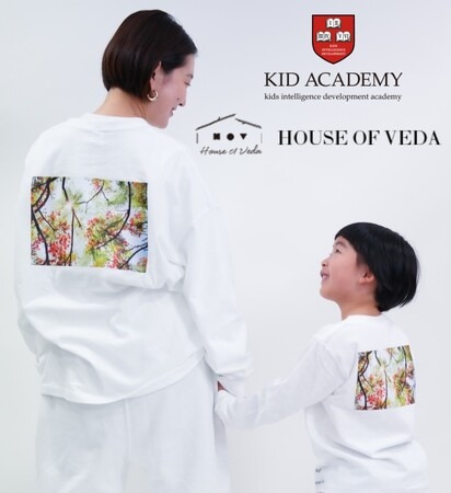 「KID ACADEMY」と「House Of Veda」でデザインした親子ウェアには、世界を救い幸福をもたらすと信じるキーワード“Diversity(多様性)”を用いたメッセージを英文でプリントしています。あわせて、親子が共に健やかに成長していく未来をイメージしたネイチャーフォト(撮影:Sho Kawai)をプリントしています。「KID ACADEMY」と「House Of Veda」の願いや期待、夢をデザインに落とし込みながら、可愛らしさに加えて着やすく動きやすさも実現したウェアに仕上がっています。