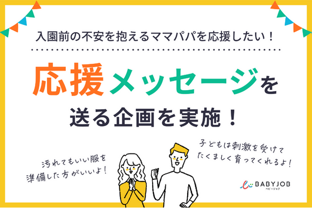 保育施設向けおむつのサブスク「手ぶら登園」や保育施設探しをサポートする「えんさがそっ♪」など、子育て支援サービスを運営するBABY JOB株式会社は、これから保育園に入園するママパパたちの不安を取り除くための応援企画を実施しました。