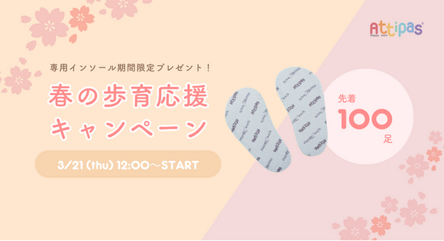 weskiii(ウェスキー)株式会社(本社:東京都港区https://weskiii.com/)が運営する、赤ちゃんの為の歩育シューズブランドAttipas(アティパス)は、「春の歩育応援キャンペーン」として、アティパス専用インソールをプレゼントいたします!
