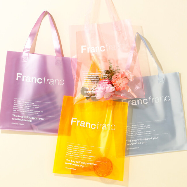 2023年7月にデビューした「クリア トートバッグ」は発売から3か月で約1万点を販売したFrancfrancの人気アイテムです。爽やかなカラーが魅力で、防水仕様なので海やプールなど水場のレジャーに最適なトートバッグです。今年は新たにトレンドのグリーンやオレンジ、パール調のカラーを取り入れた全8色をラインアップしました。春夏のおでかけに、お気に入りのハンディファンやポーチを入れて“中身を見せるバッグ”としてコーディネートを楽しんだり、アートフラワーを入れてインテリアとしてお部屋に飾ったり、イエソトでもイエナカでもお楽しみいただけます。