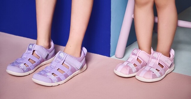 さらに、つま先を覆うアッパーにより、サンダルにありがちな指先のケガを防ぎ、子どもたちの水場遊びをサポート。両ベルトタイプを採用しているため、履き口が大きく開き、濡れた足でも簡単に脱ぎ履きできる一方で、着用時は左右のそれぞれのベルトがしっかりとホールドし、遊んでいても脱げにくい仕様となっています。