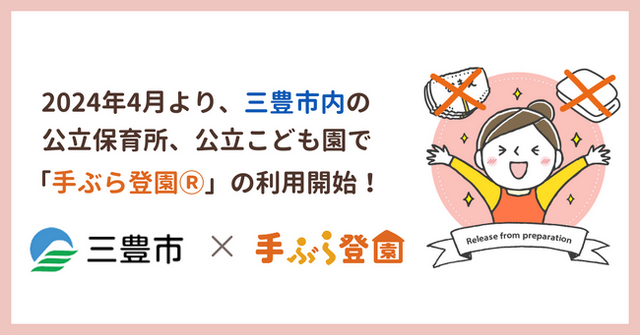 BABY JOB株式会社(本社:大阪府大阪市、代表取締役社長 上野公嗣)は、2024年4月より香川県三豊市の市内公立保育所、こども園において、保育施設向け紙おむつとおしりふきのサブスク「手ぶら登園」が利用されることをお知らせします。