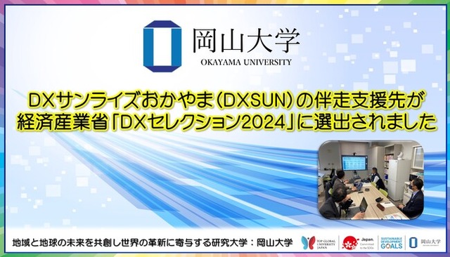 2024年3月19日、国立大学法人岡山大学(本部:岡山市北区、学長:那須保友)がプロジェクトリーダーを務める産学官金連携DX支援コミュニティ「DXサンライズおかやま」(以下、DXSUN)の伴走支援先であるオカネツ工業株式会社が、経済産業省「DXセレクション2024」において優良事例として選出されました。