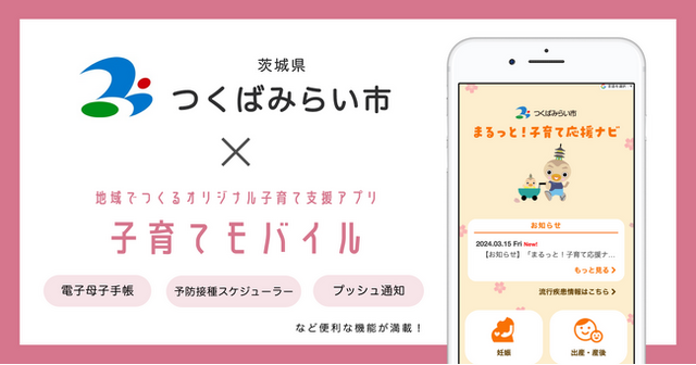 自治体向けサービスを開発する株式会社ミラボ(本社:東京都千代田区、代表取締役:谷川一也、以下「ミラボ」)の子育て支援アプリ「子育てモバイル」が、茨城県 つくばみらい市に導入され、テスト運用期間を経て この度正式に4月1日より「まるっと!子育て応援ナビ」としてリリースします。