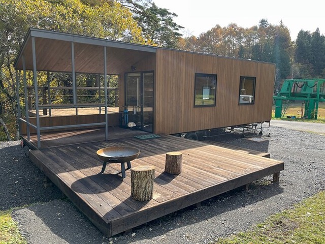 スキー場が考える最適なトレーラーハウス。冬はski in ski outができ、キャビンからそのまま目の前にあるゲレンデに向かうことができます。