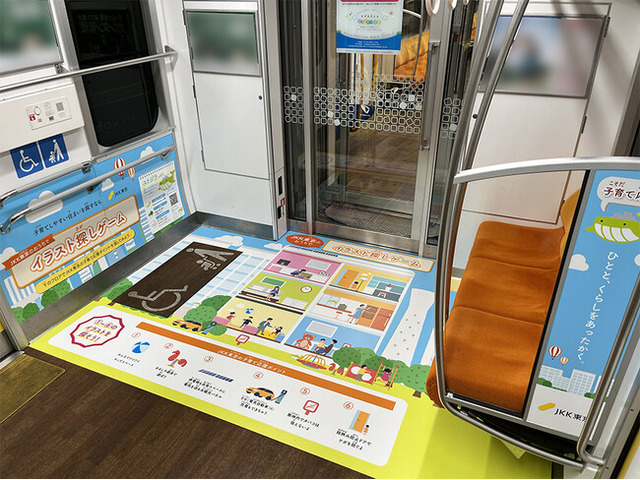 「ユトジラ」を活用して、小田急電鉄が運行する子育て応援車(3号車)のうち1車両を「JKK東京のおうちでイラスト探しゲーム」でラッピング装飾し、JKK住宅における子育て応援の取組みを紹介します。