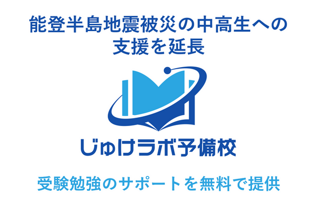 じゅけラボ予備校(所在地:大阪市北区梅田、代表取締役:後藤智則)は2024年1月より、能登半島地震の影響で塾や予備校が閉鎖して通塾ができなくなっている石川県、新潟県、富山県の中高生のために、教育支援の一環として「じゅけラボ予備校」のサービスを無料で提供しています。