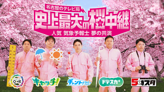 東海エリアの民放5局(東海テレビ、中京テレビ、CBCテレビ、メ~テレ、テレビ愛知)がタッグを組んでチャレンジする「史上最大の桜中継」が、桜の開花に合わせて、予定より1週間後の4月4日(木)と5日(金)に放送することになった。