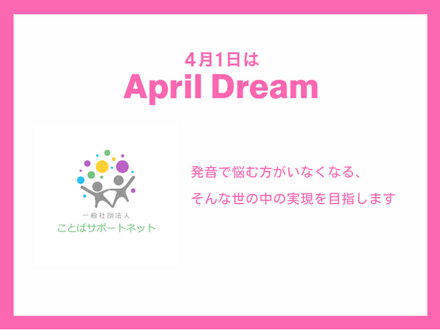 当法人は、April Dreamに参加しています。このプレスリリースは「一般社団法人ことばサポートネット」の夢です。